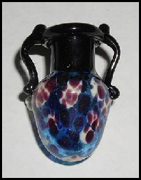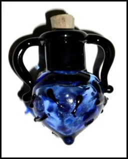 Blown vessels - generally approximately 1.5 inches tall. Great fun for small pendant, perfume, essential oil, etc. Each comes with a natural cork, even if not pictured. Some bottles have handles - some do not. The ones without a handle are easily wire-wrapped in silver or gold to create a pendant. |
